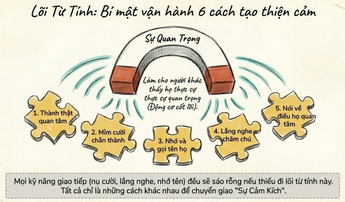 Ngoài ra, nếu bạn đang muốn tìm hiểu về Phần Hai (được liệt kê là phần lớn thứ 2 trong mục lục), nội dung sẽ bao gồm “Sáu cách tạo thiện cảm” với các chủ đề như: thành thật quan tâm đến người khác, mỉm cười, nhớ tên người đối diện, lắng nghe, nói về điều người khác quan tâm và làm cho họ thấy mình quan trọng